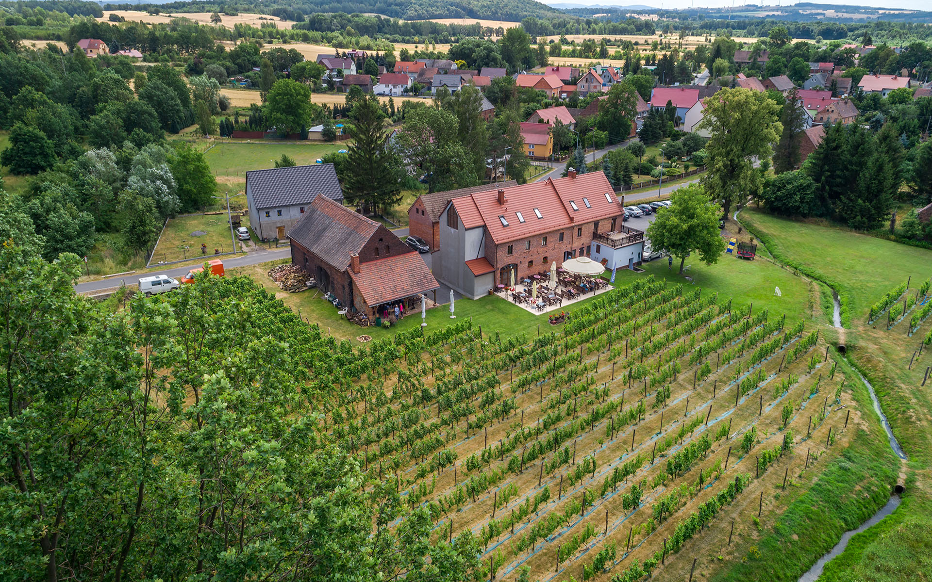 Joanna i Grzegorz Kusiowie w nieprzypadkowym miejscu, bo w Radomierzycach na polsko-czesko-niemieckim trójstyku, w starym gospodarstwie rodzinnym, założyli restaurację. I karmią tu tradycyjnie, jak to na Łużycach bywało. – Prosta, skromna, ale jednocześnie pyszna kuchnia, wyborne wino z tutejszych winorośli i wędzonki. – Czego chcieć więcej? W dodatku wszystko, czego można tutaj spróbować, pochodzi właśnie z tego rejonu. Bo nawet winnice na dolnośląskich terenach to nic nowego.